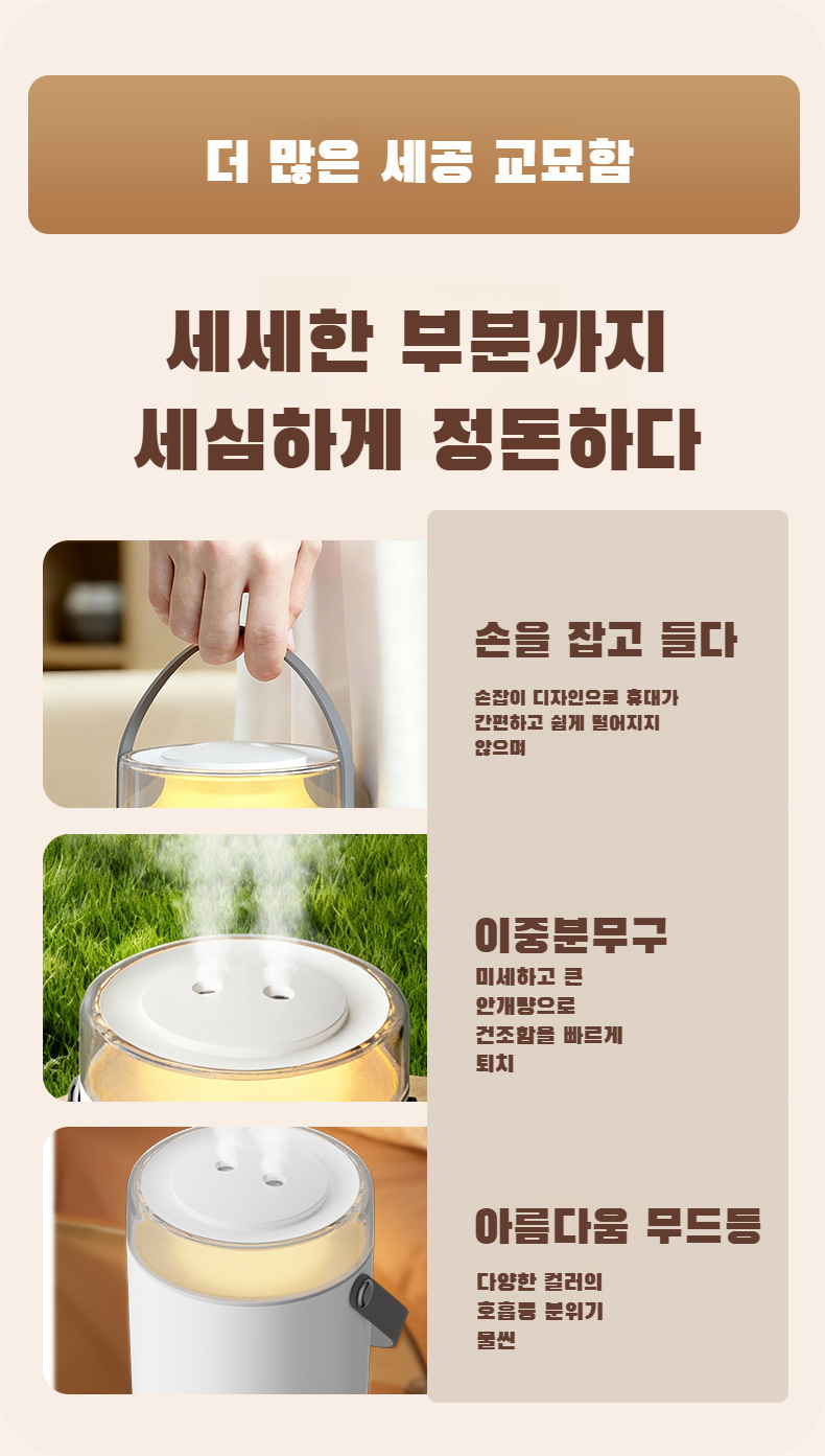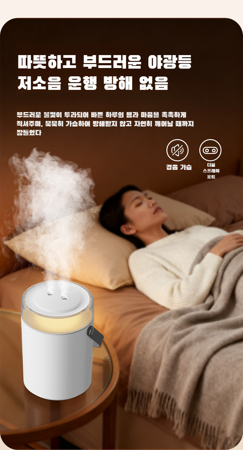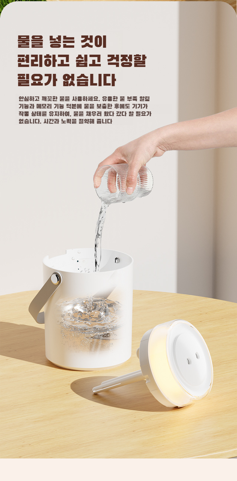 ● 저소음 설계로 밤에도 조용하게 사용할 수 있어 임산부와 아기를 위한 침실에 최적화된 가습기입니다. ● 미니멀한 사이즈와 세련된 디자인으로 탁상, 거실, 사무실 등 다양한 공간에 인테리어 소품으로도 활용 가능합니다. ● 무드등 기능이 탑재되어 은은한 분위기 연출이 가능하며, 안개 분사로 피부와 호흡기 건강까지 챙겨줍니다. ● 간편한 사용법과 손쉬운 물 보충, 청소로 누구나 스트레스 없이 쾌적하게 사용할 수 있습니다. ● 에너지 절약형 제품으로 오랜 시간 사용해도 전기요금 부담 없이 안심하고 사용할 수 있습니다.