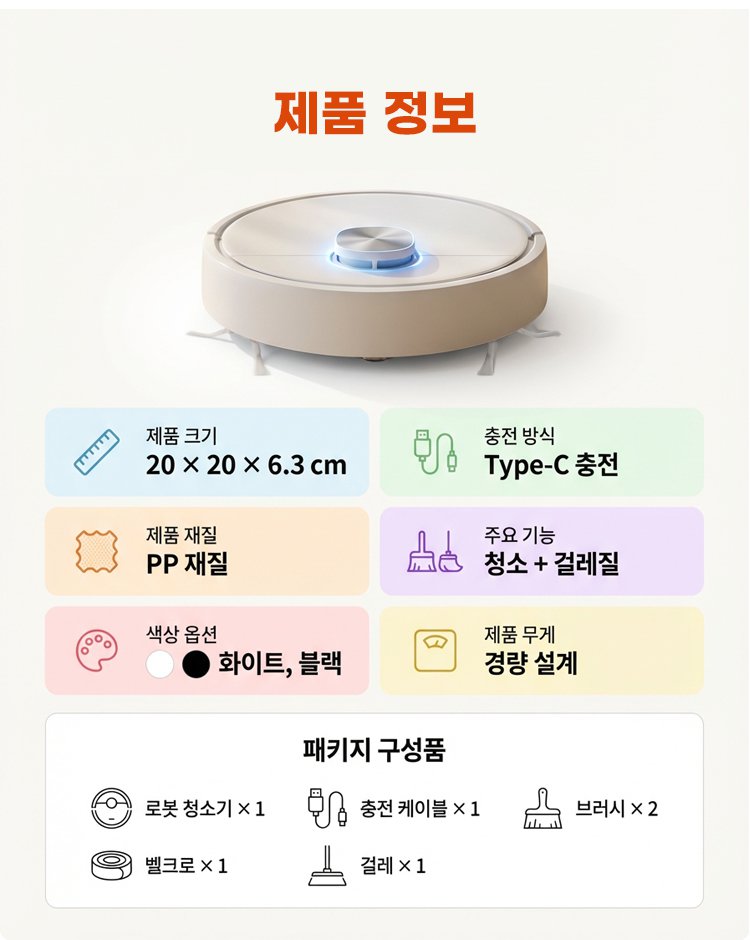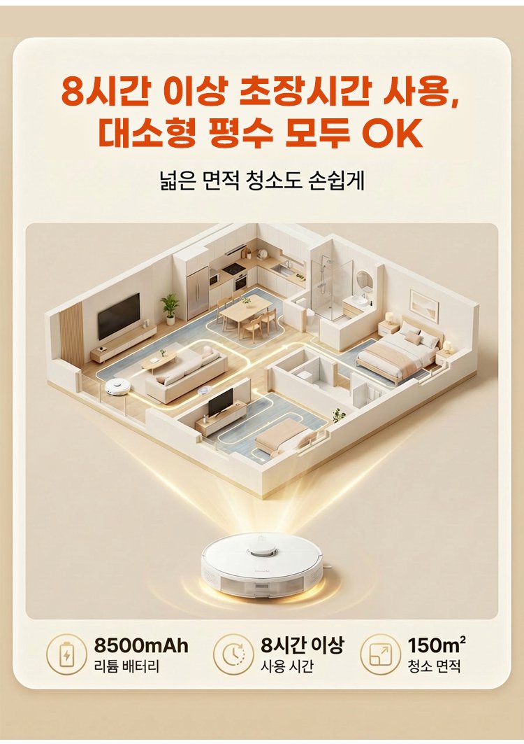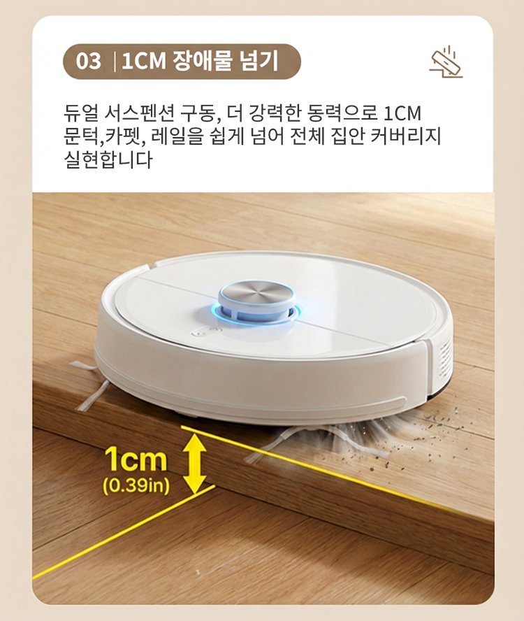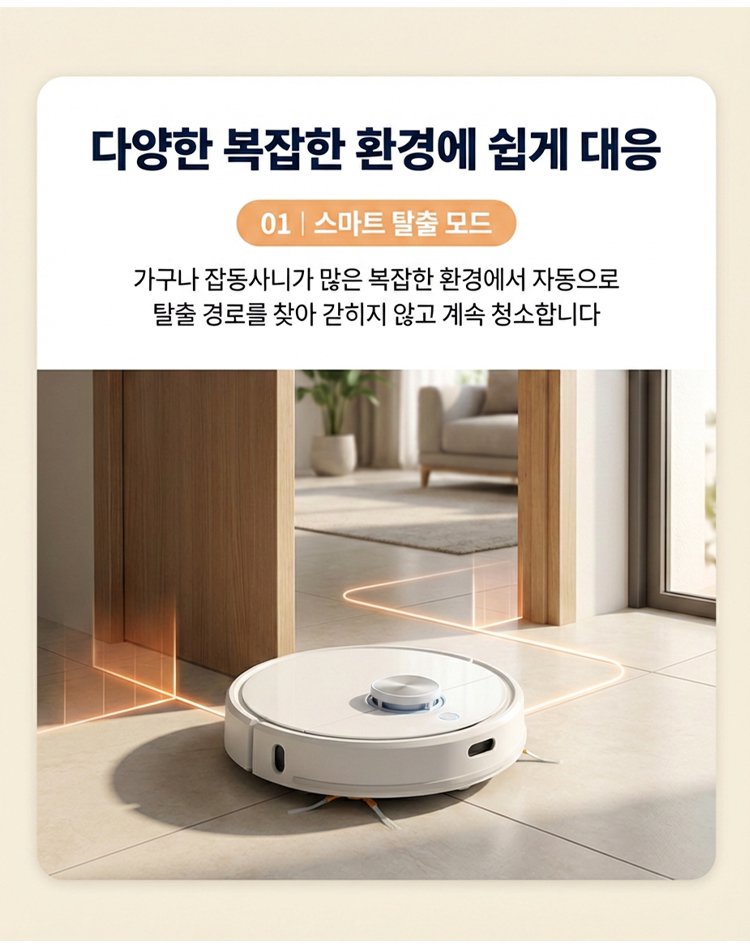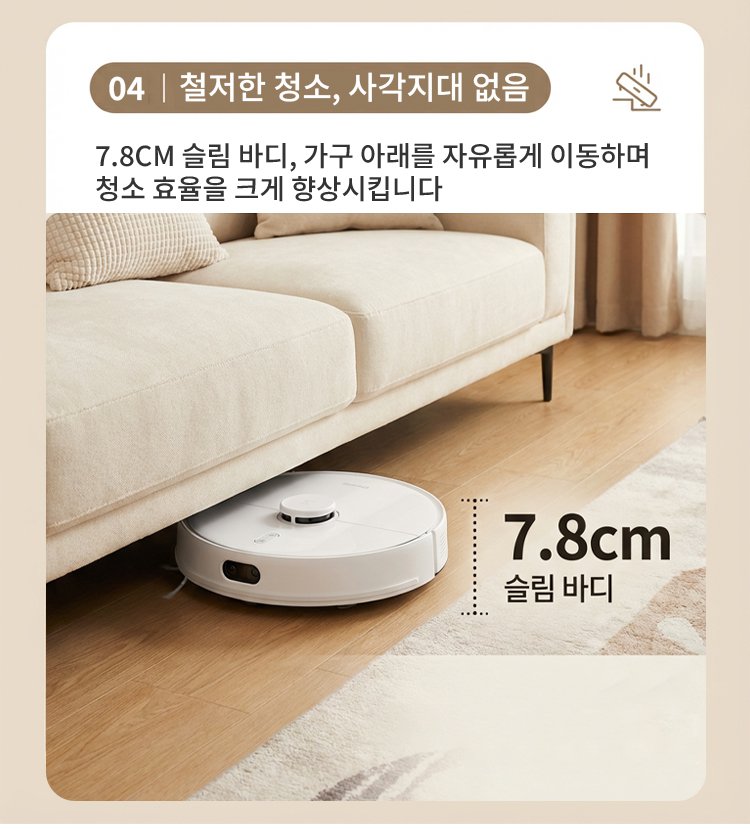 ● 최신 AI 알고리즘 탑재로 집안 구석구석까지 꼼꼼하게 청소하며, 스스로 장애물을 인식하고 회피합니다. ● 스마트폰 앱 연동으로 언제 어디서나 청소 예약 및 실시간 상태 확인이 가능해 더욱 편리합니다. ● 업그레이드된 강력한 흡입력과 저소음 설계로 쾌적한 환경에서 효율적인 청소를 경험할 수 있습니다. ● 자동 충전 및 청소 구역 분할 기능을 통해 바쁜 일상에도 손쉽게 완벽한 청결을 유지하세요. ● 고성능 센서와 스마트 내비게이션 시스템으로 가구나 카펫도 문제없이 자유롭게 이동하며 청소합니다.