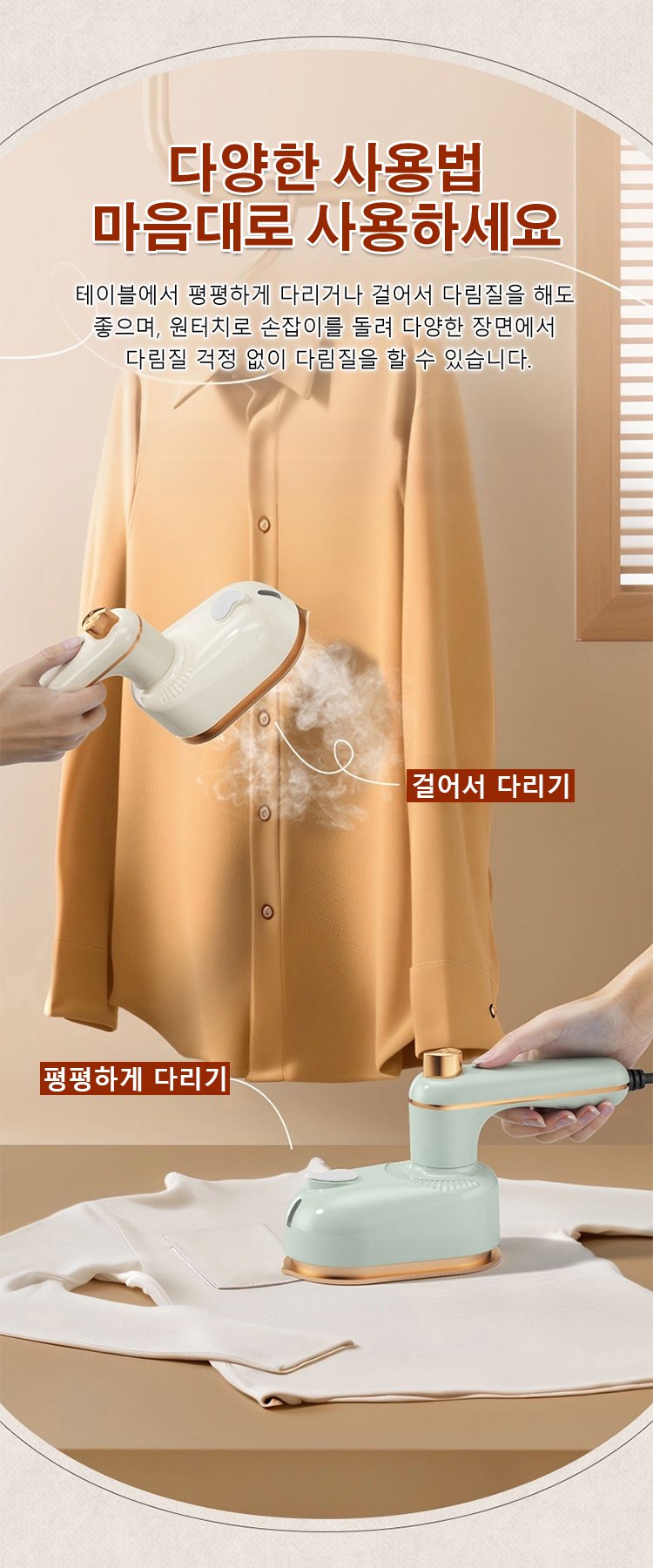 스팀 기능이 탑재된 휴대용 다리미